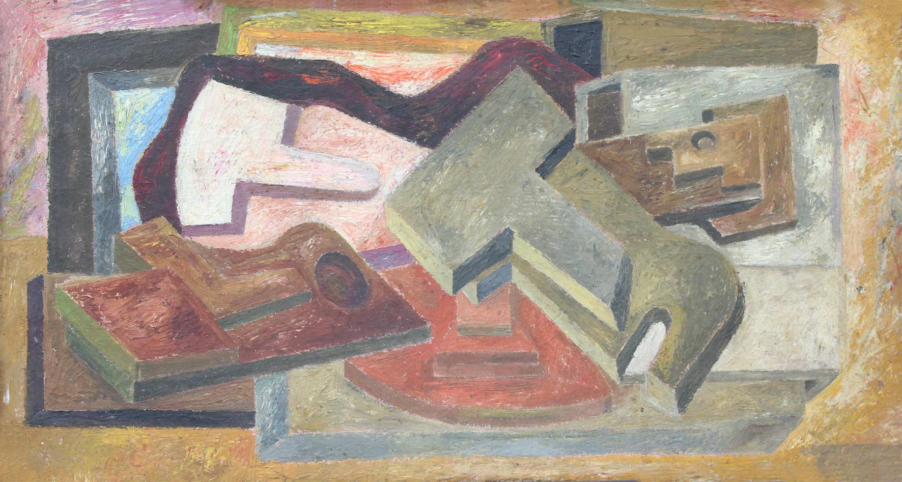 Composición, s/f, óleo sobre cartón corrugado, 24 x 34 cm