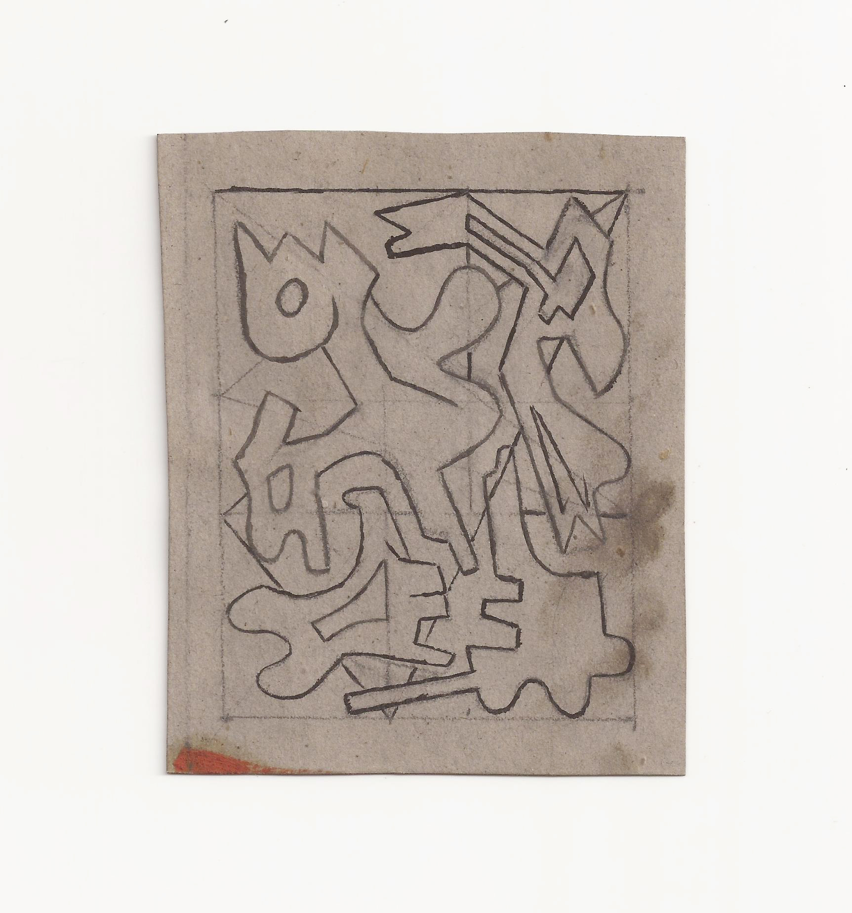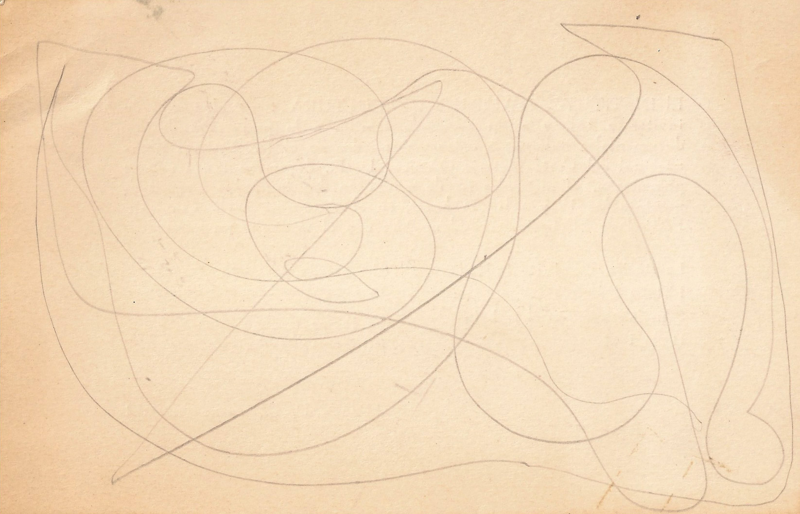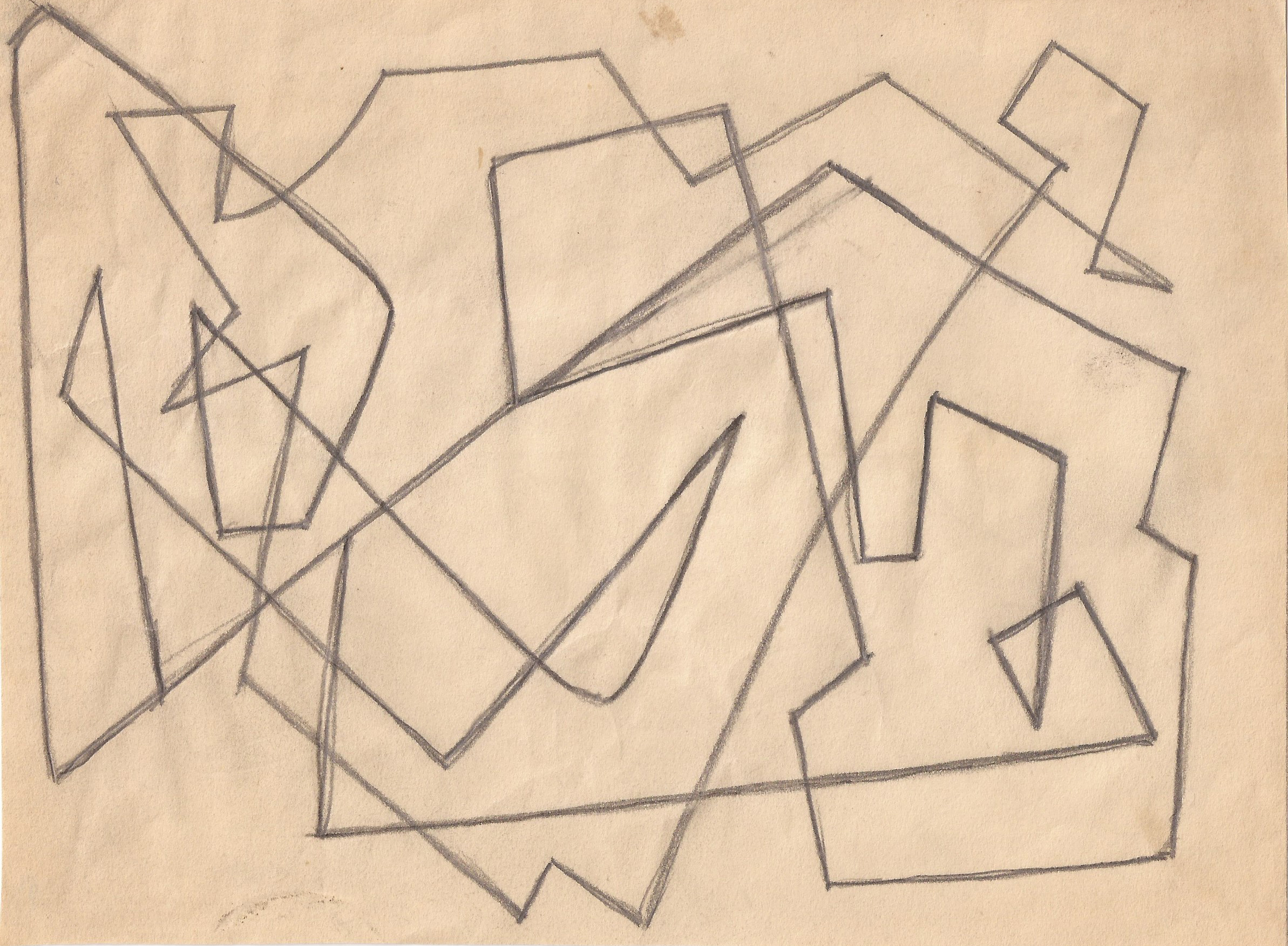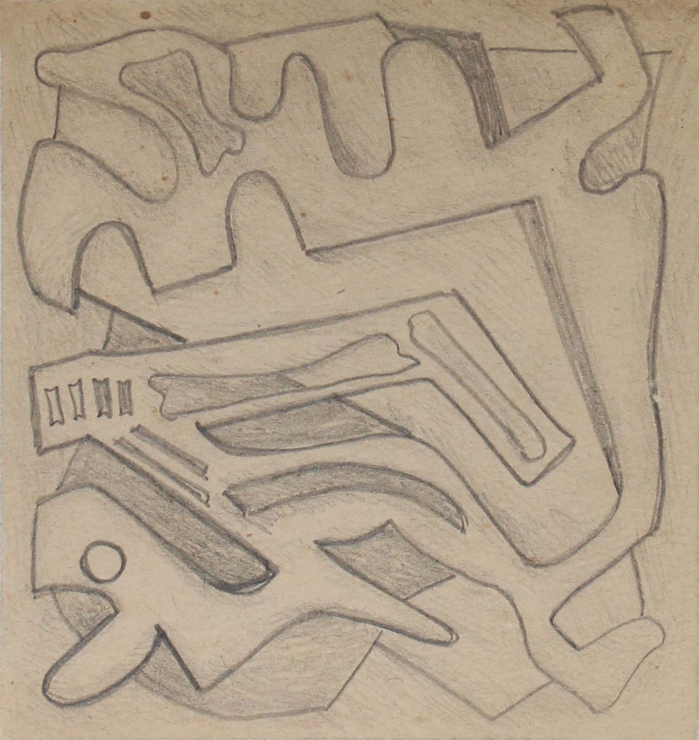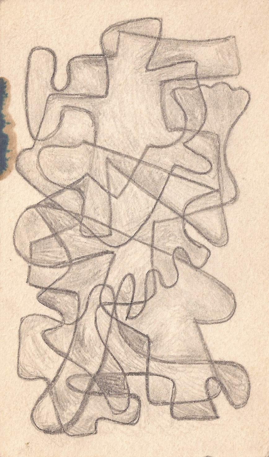 Abstracción, 1942, dibujo a lápiz sobre papel, 17 x 13.5 cm