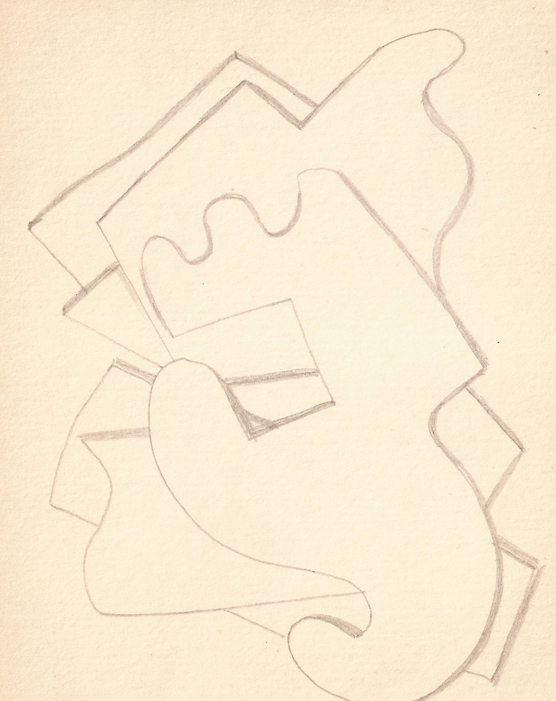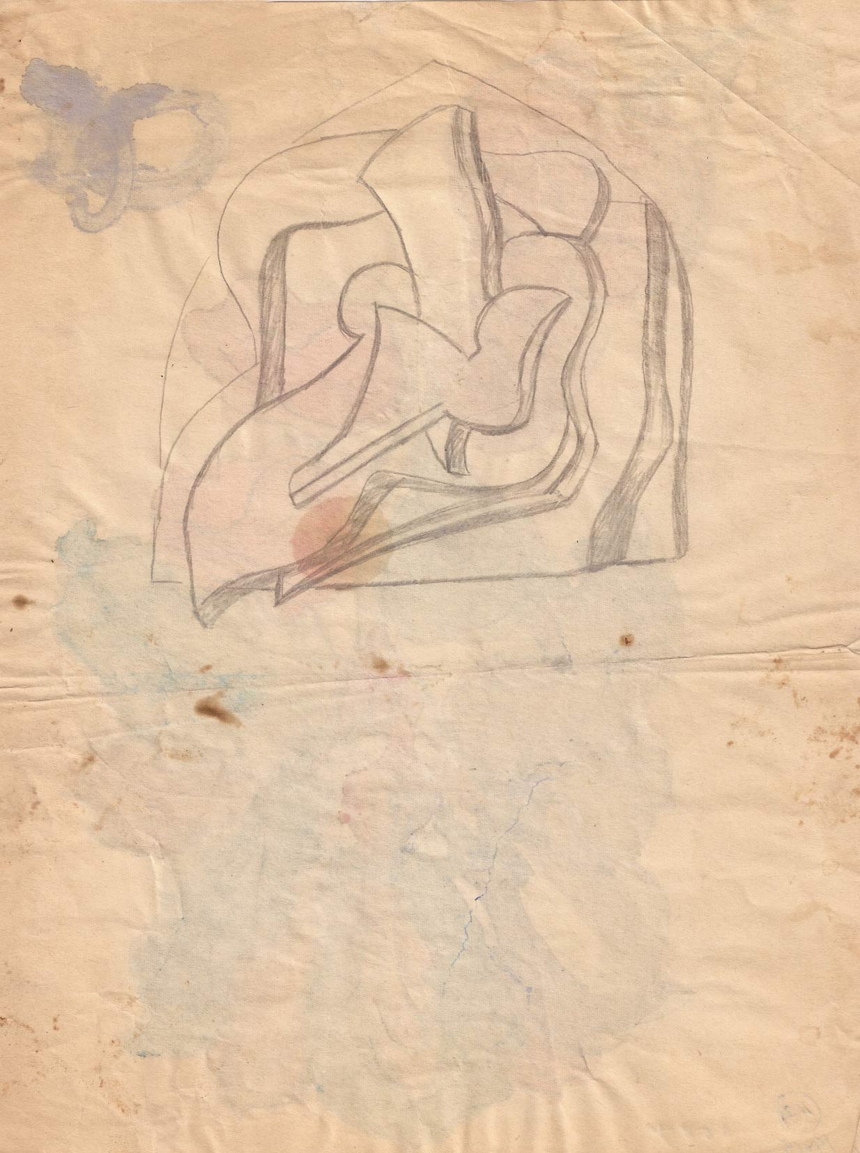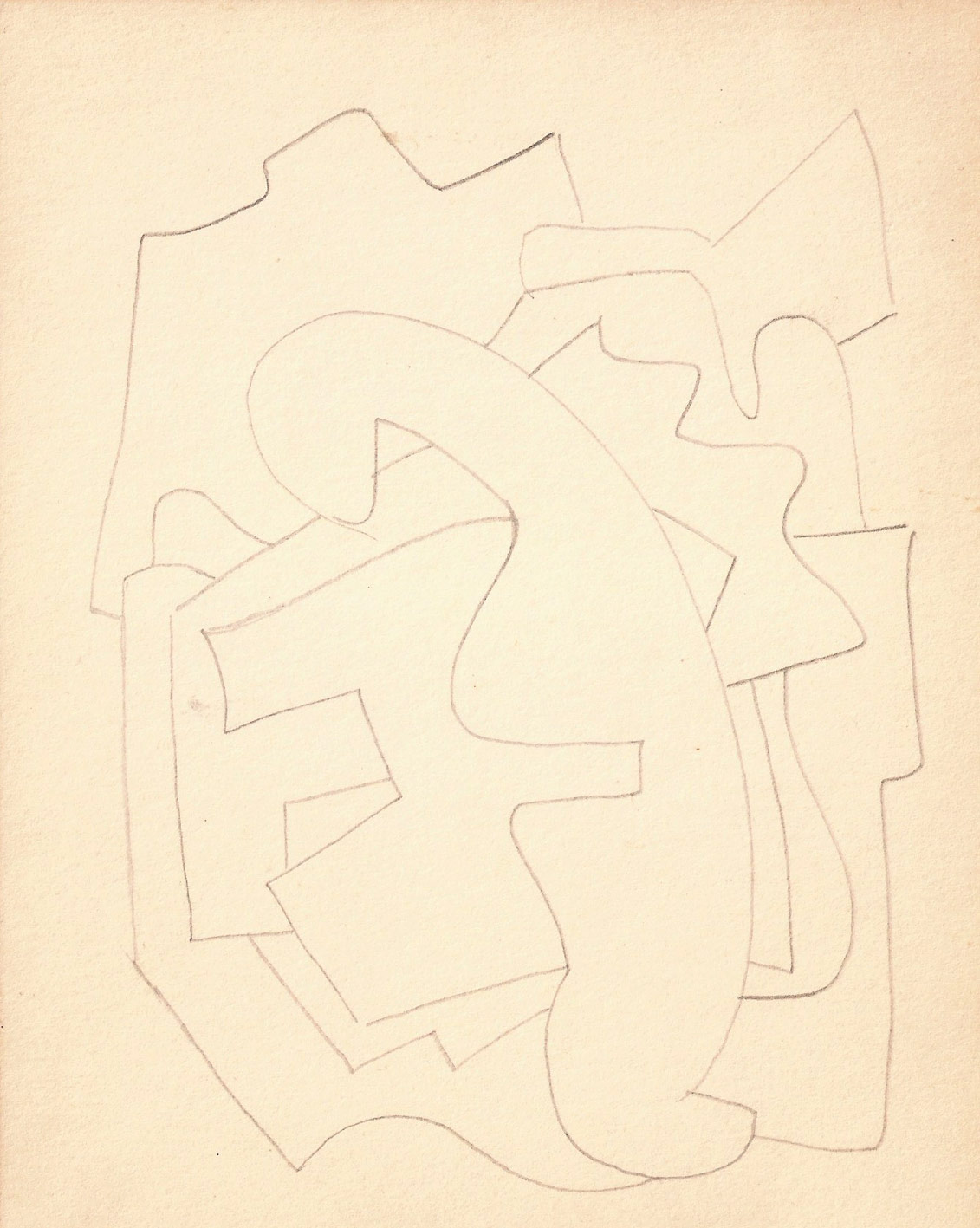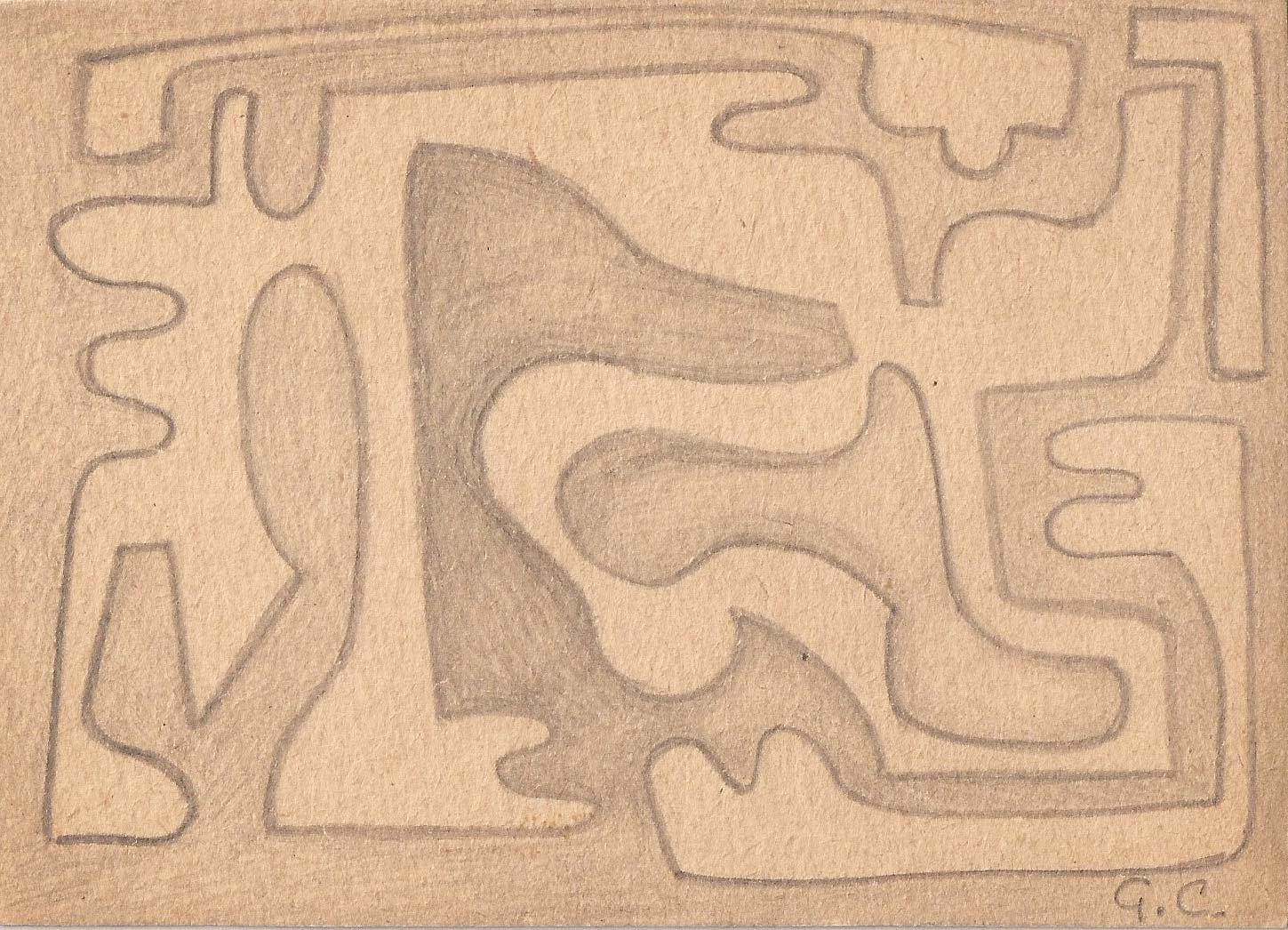 Abstracción, 1942, dibujo a lápiz sobre papel, 17 x 13.5 cm