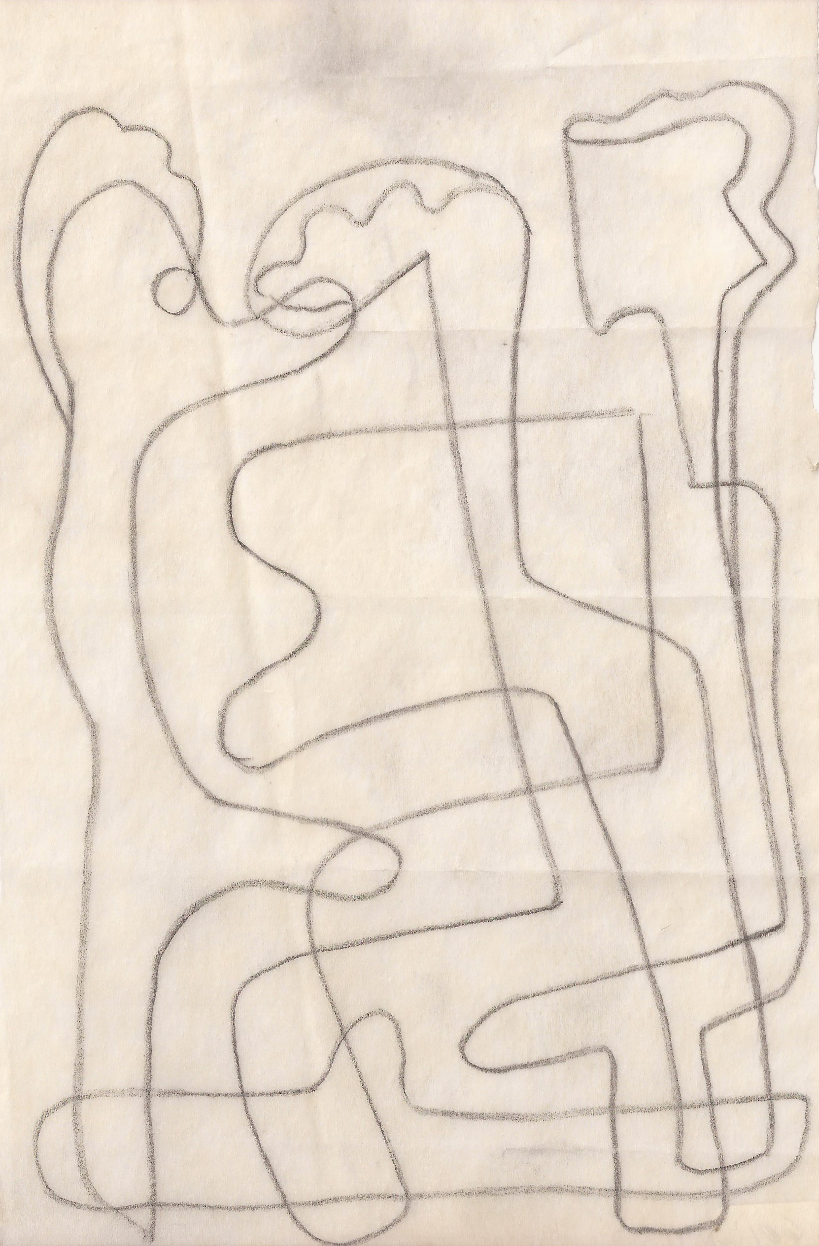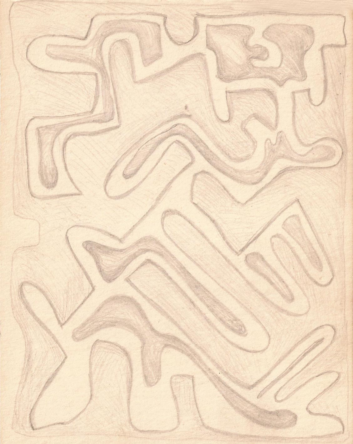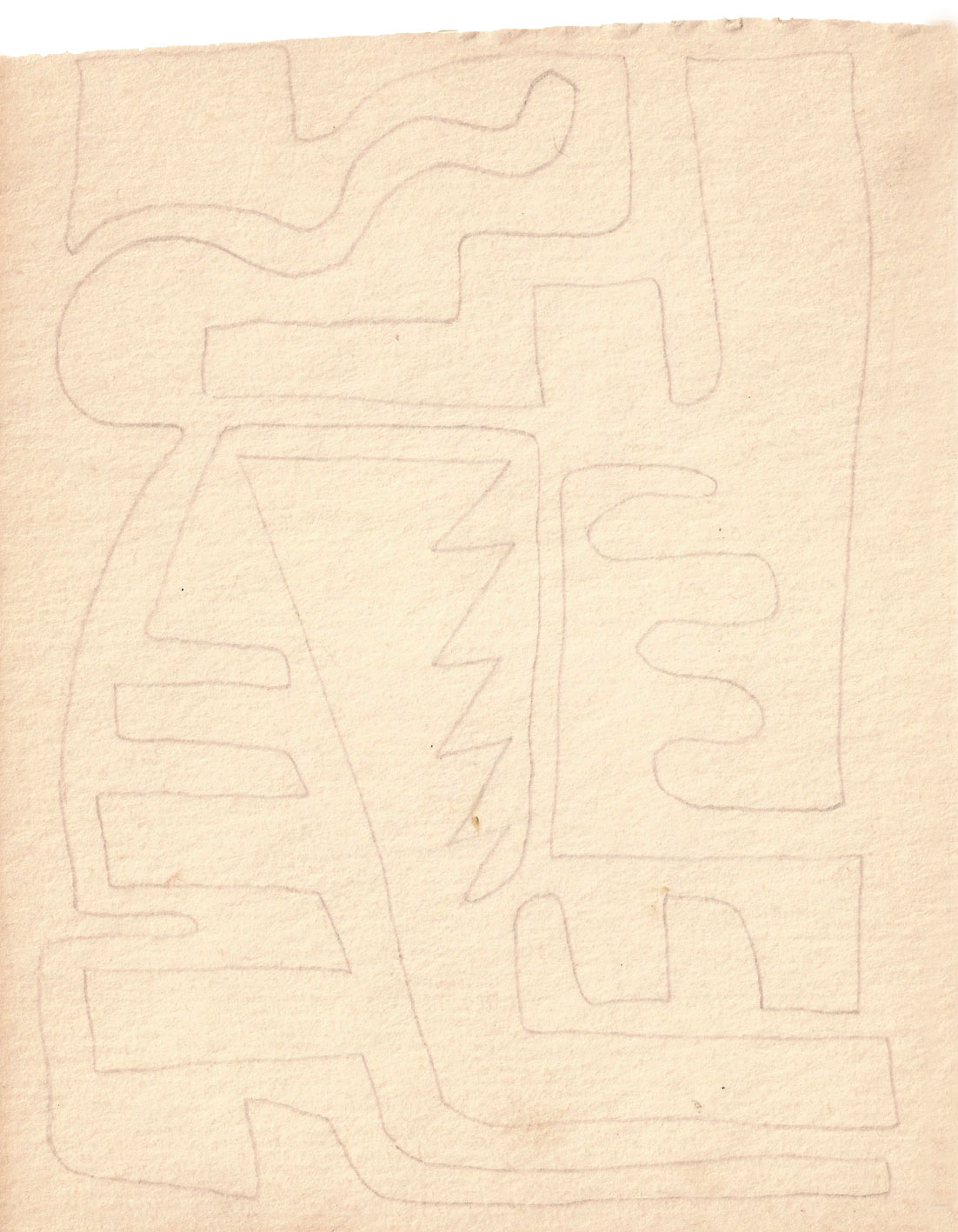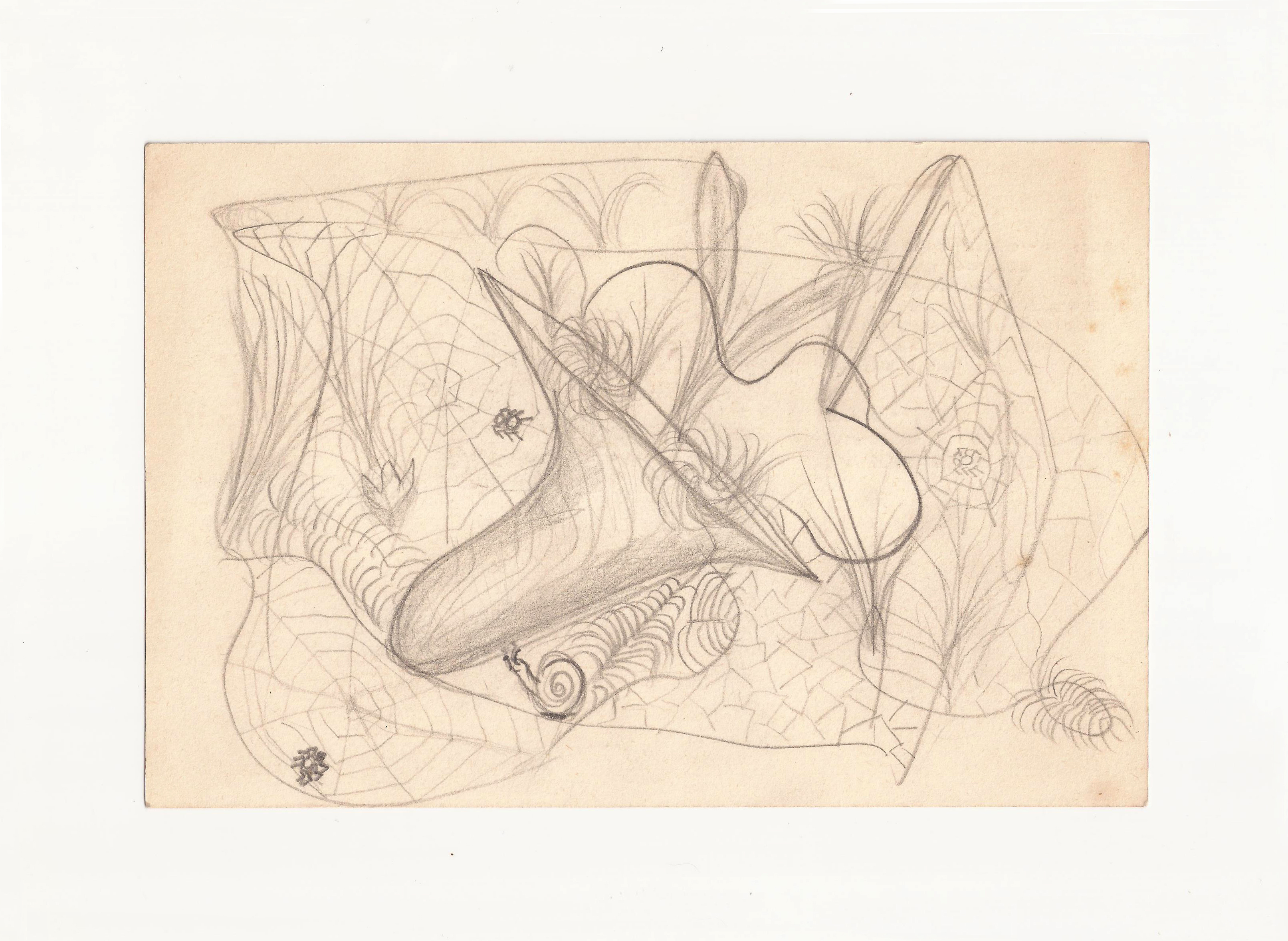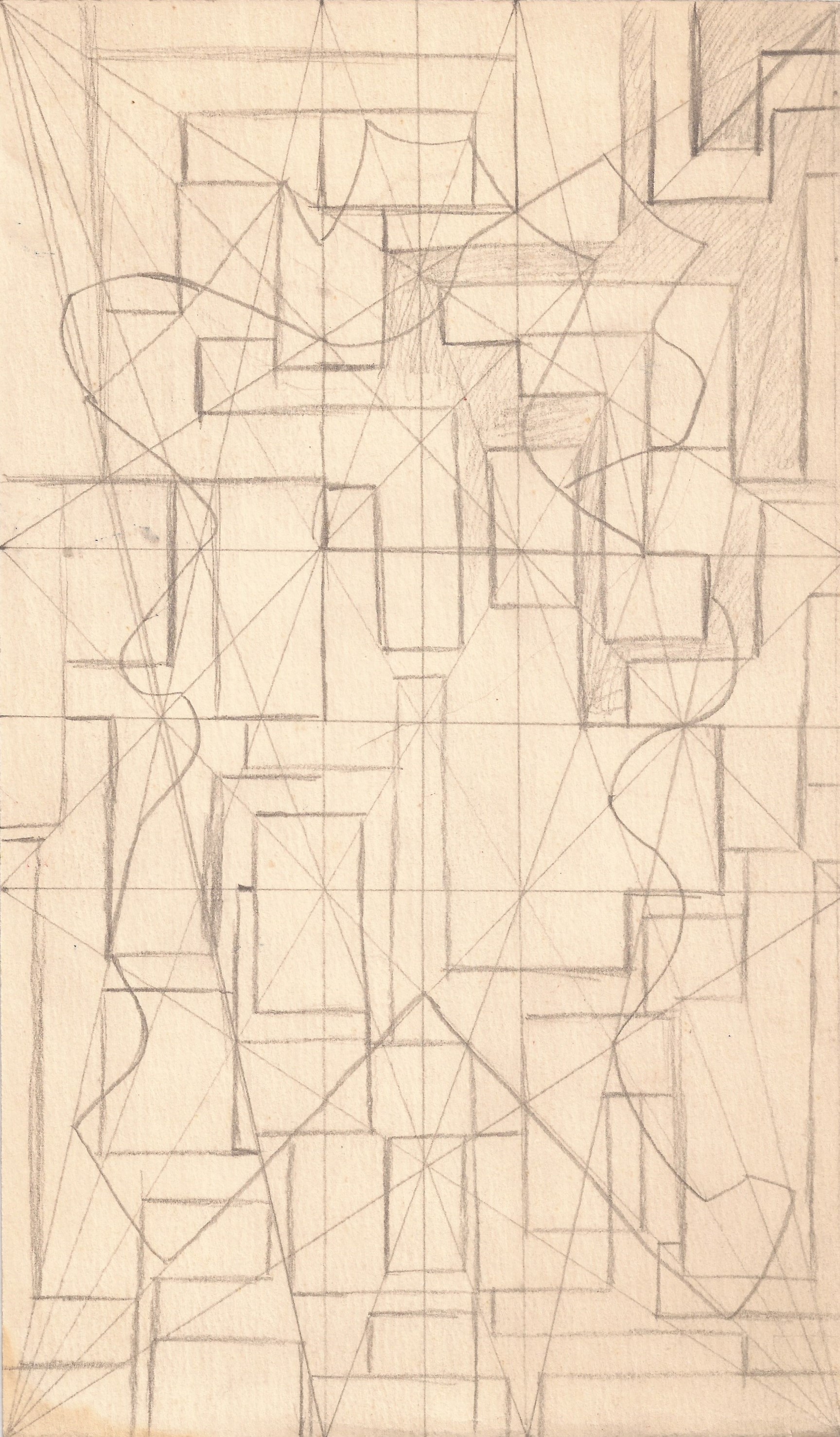 Abstracción, 1942, dibujo a lápiz sobre papel, 17 x 13.5 cm
