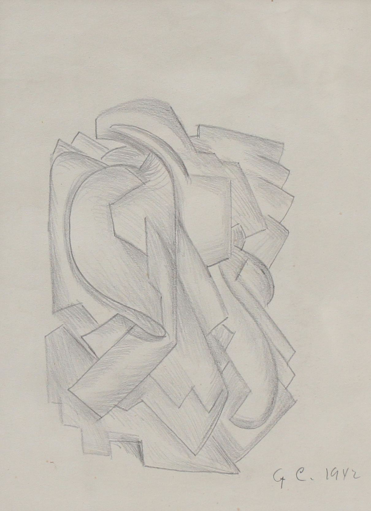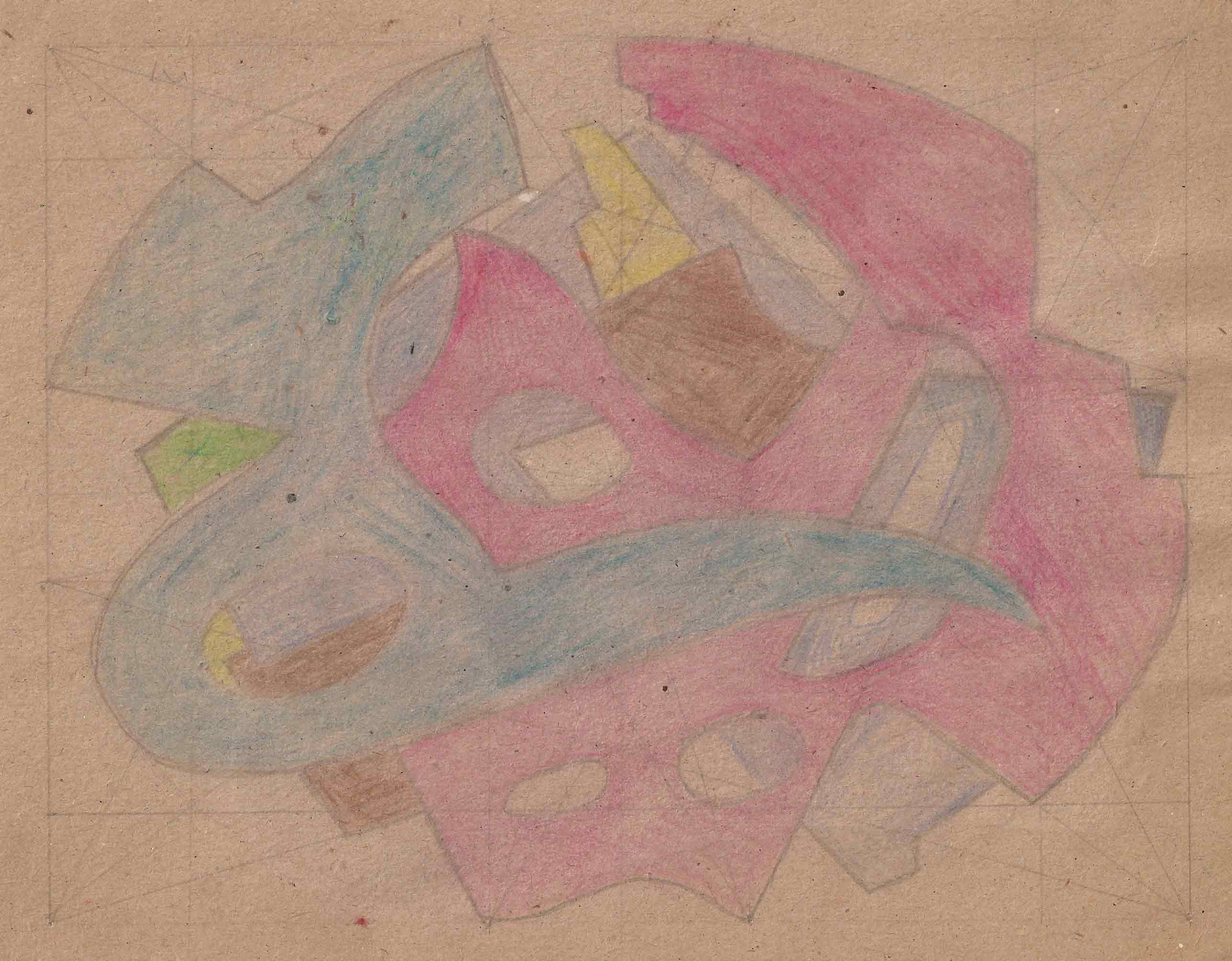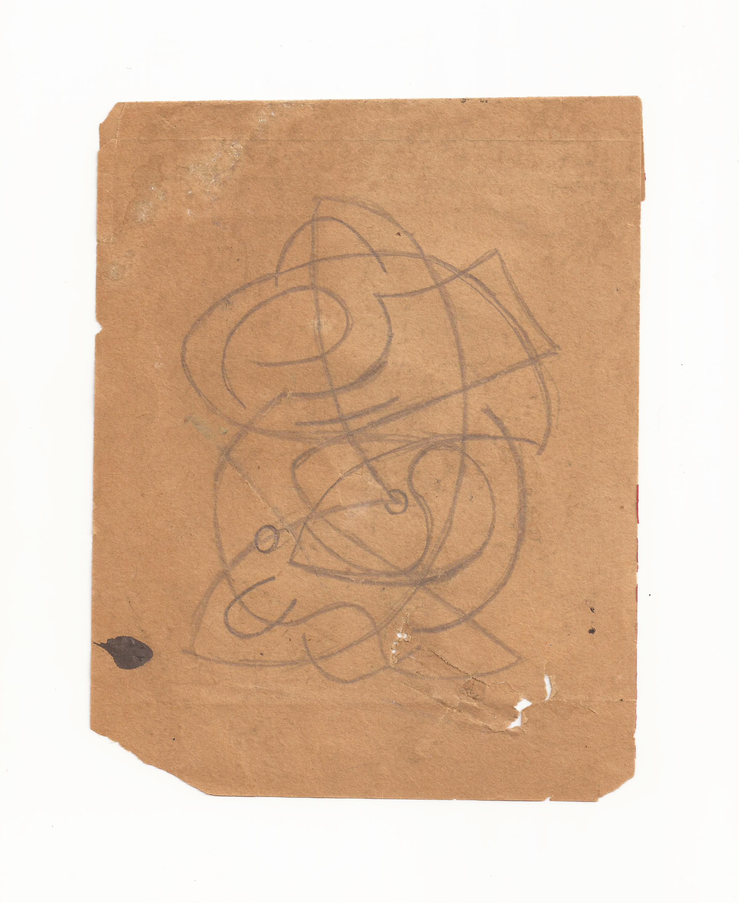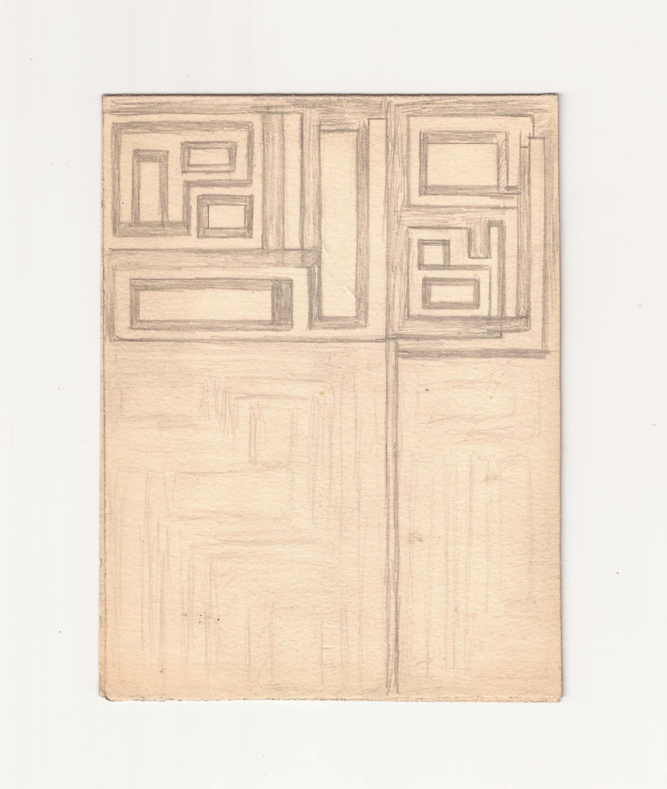 Abstracción, 1942, dibujo a lápiz sobre papel, 17 x 13.5 cm