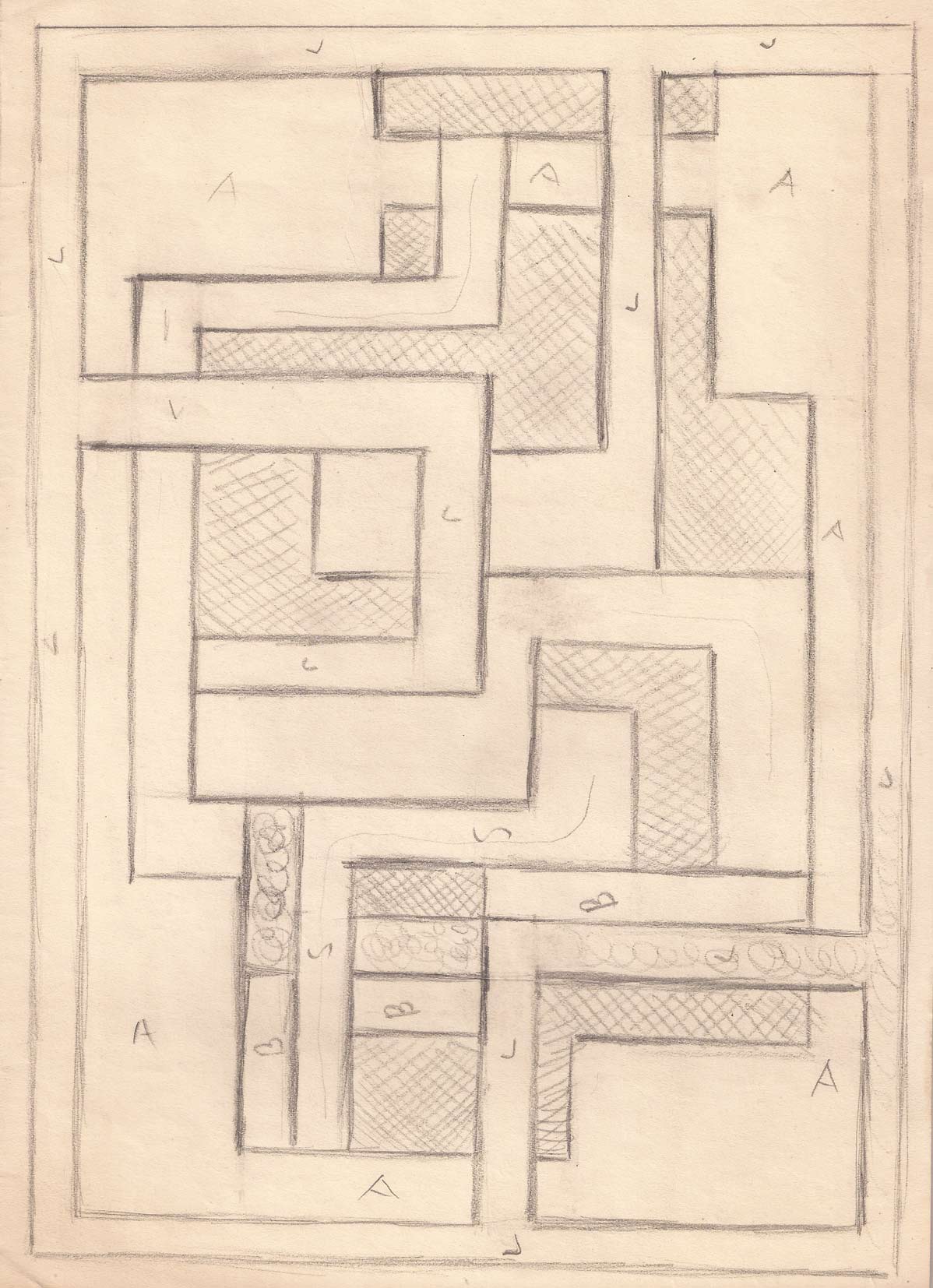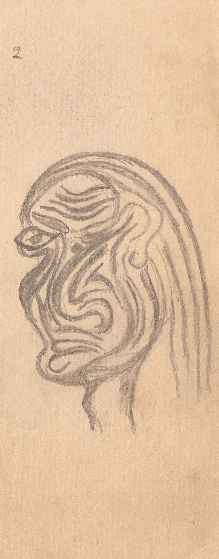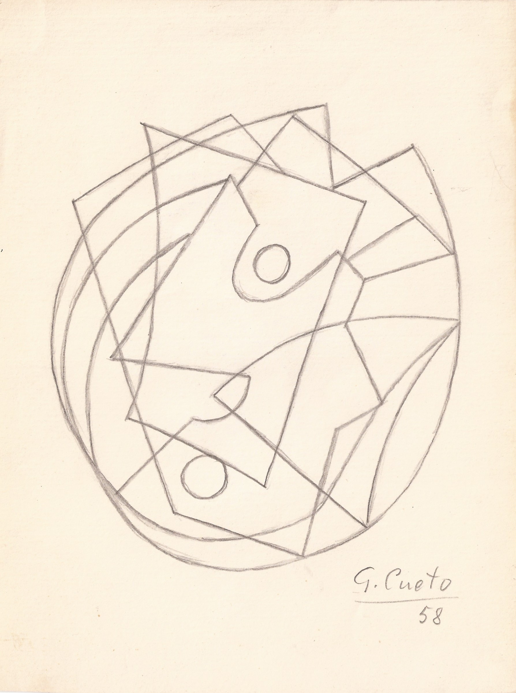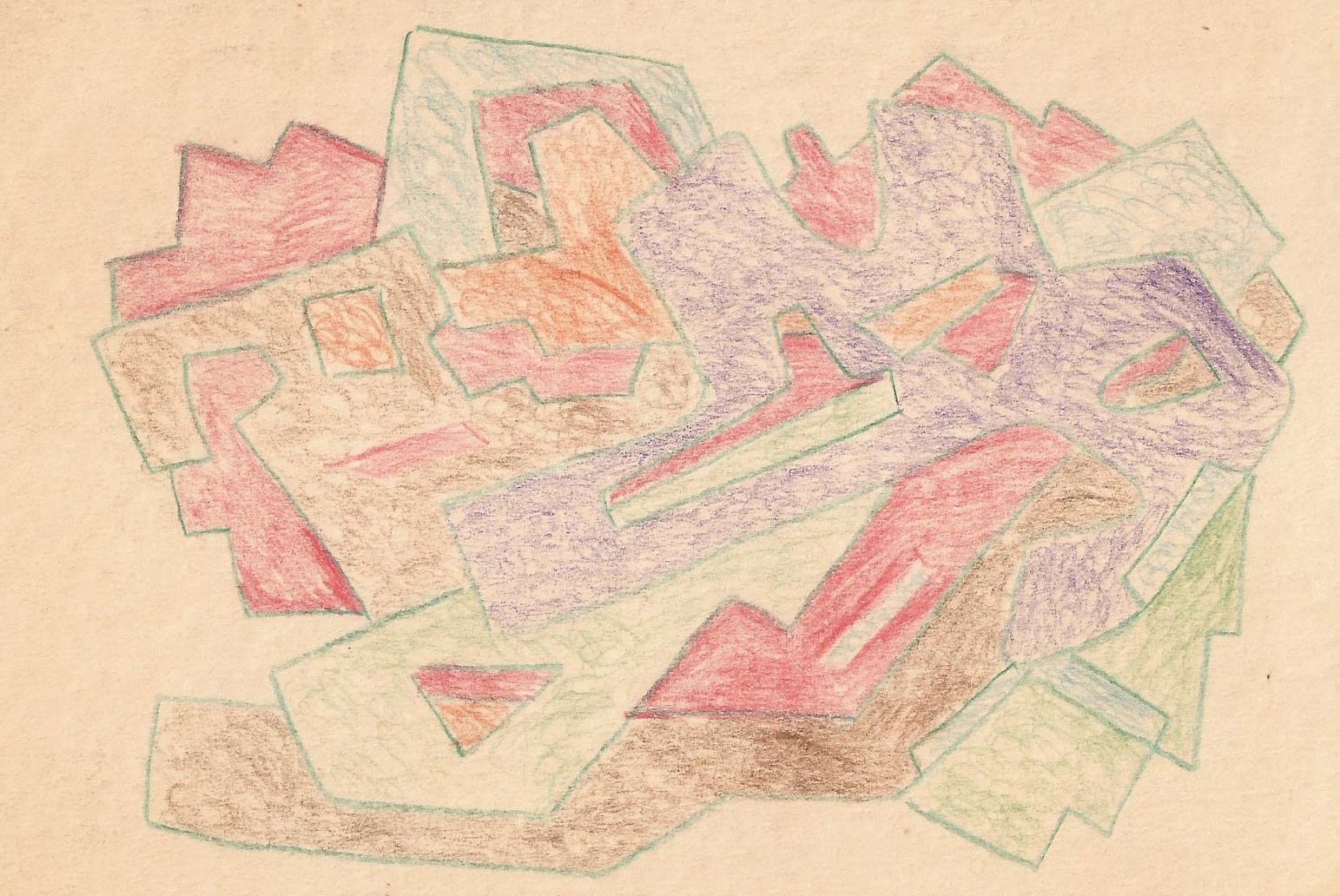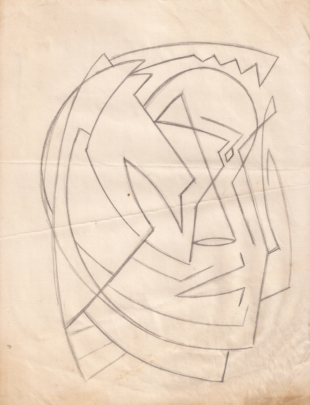 Abstracción, 1942, dibujo a lápiz sobre papel, 17 x 13.5 cm