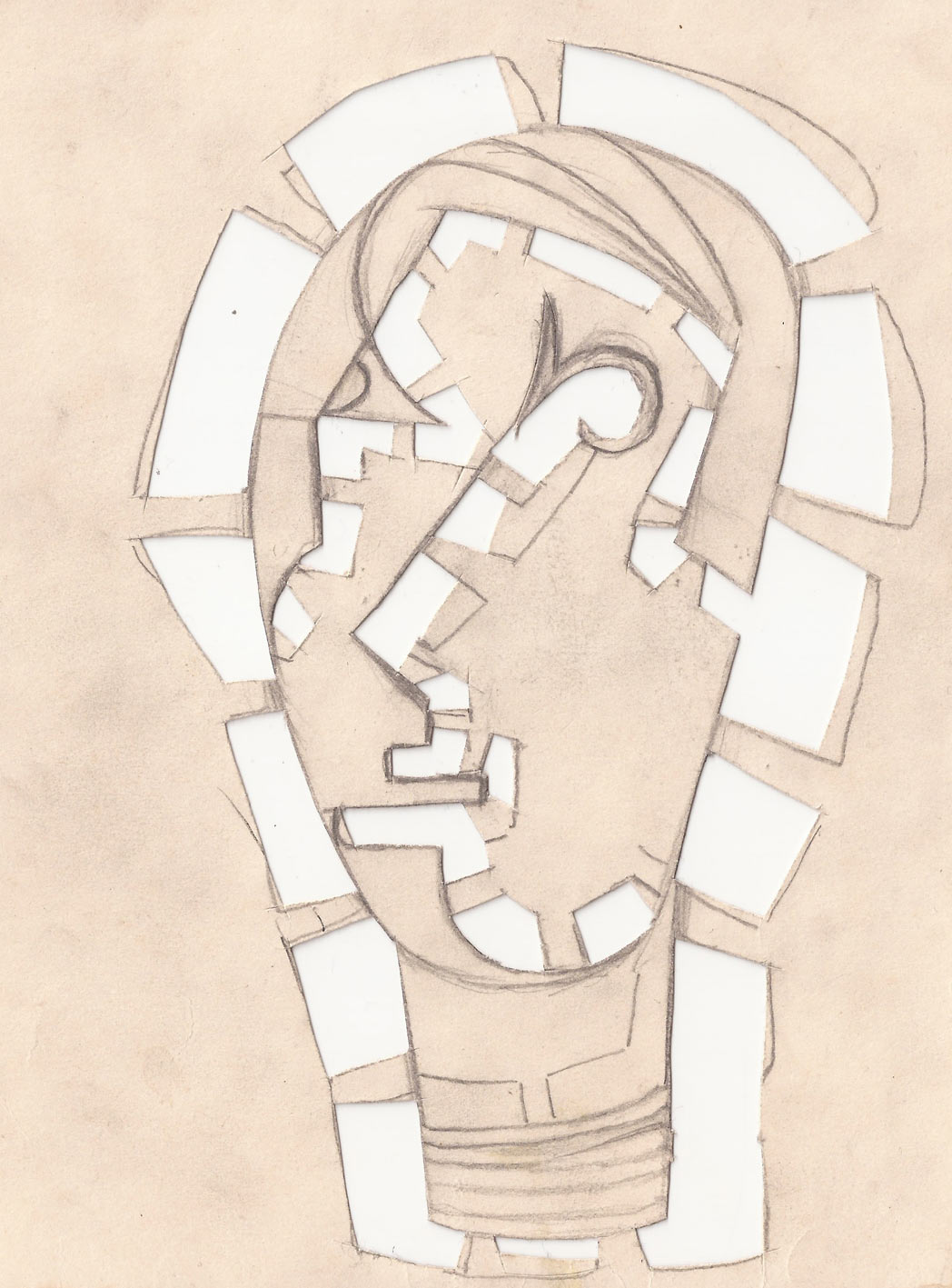 Máscara, s/f, lápiz y papel recortado sobre papel,