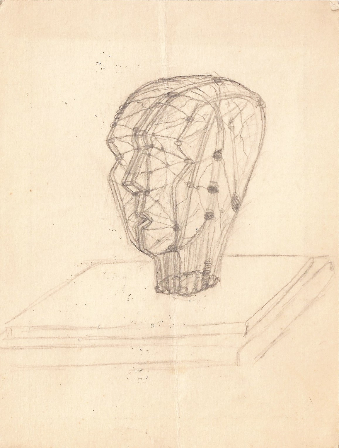 Proyecto y rostro, s/f, lápiz sobre cartón, 30 x 30 cm