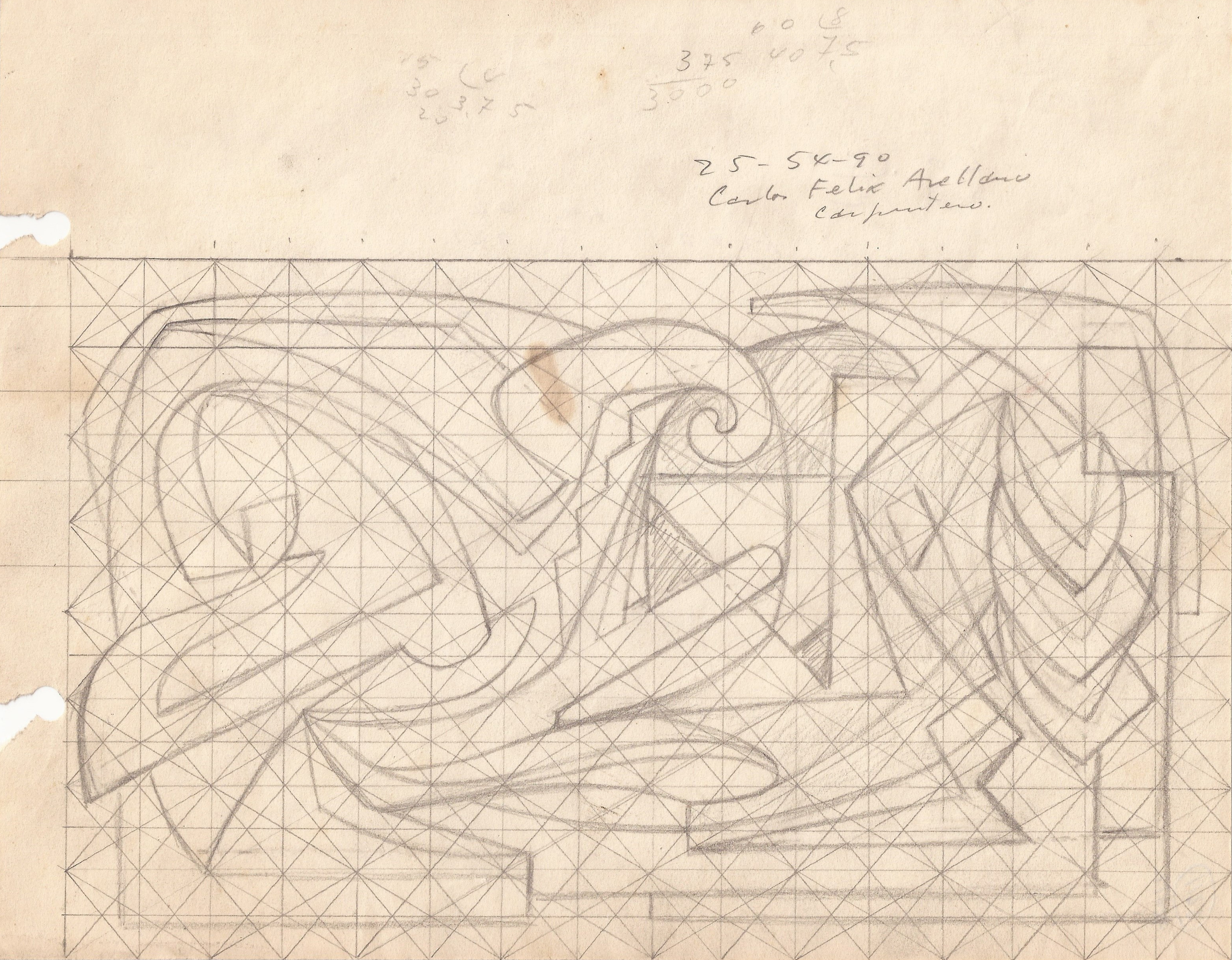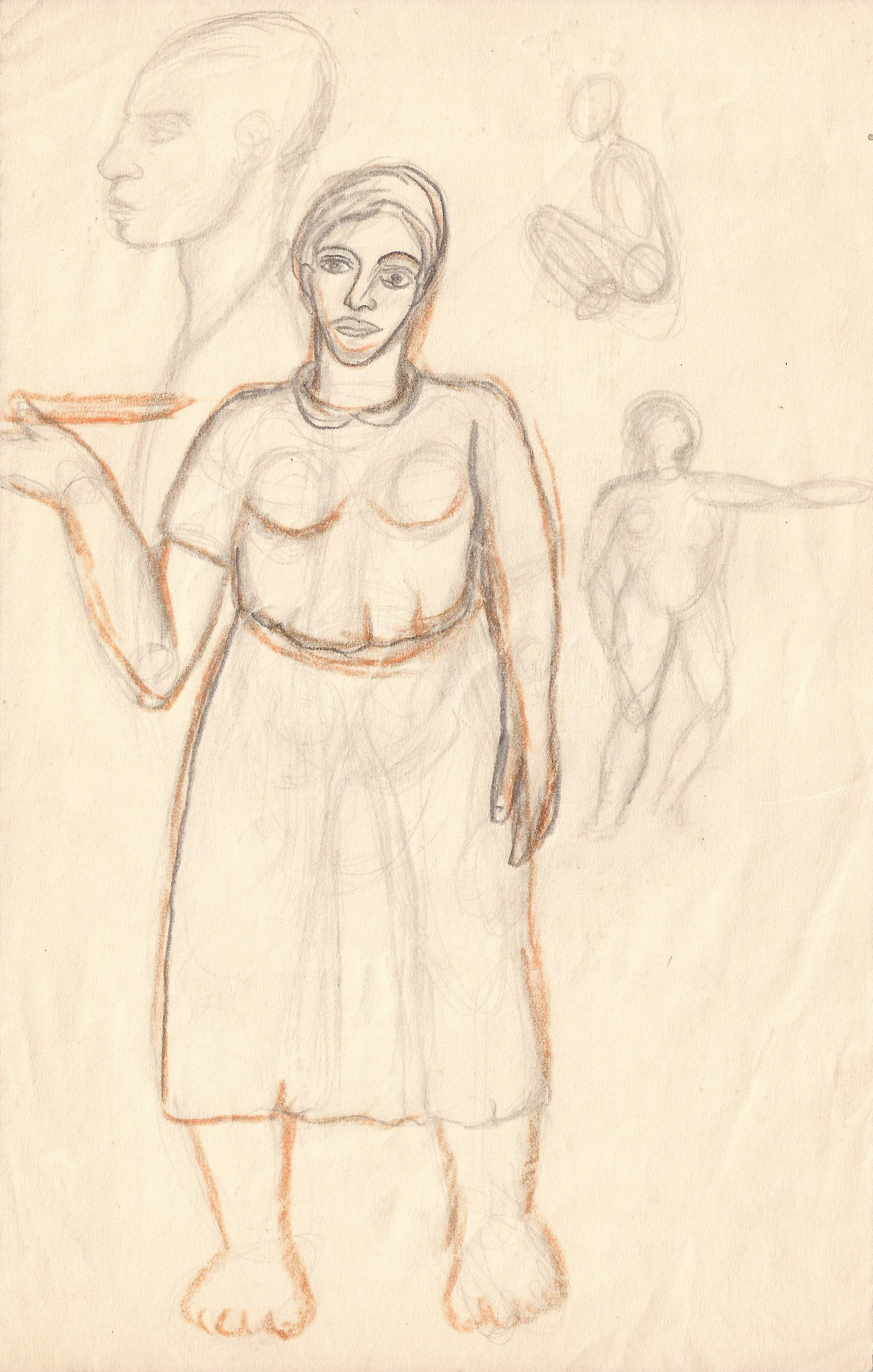 Proyecto para mural en bajo relieve, 1945, lápiz sobre papel,