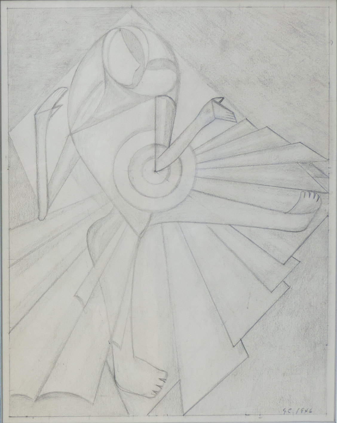 Paisaje futurista, 1938, dibujo a lápiz sobre papel, 48.8 x 31.8 cm