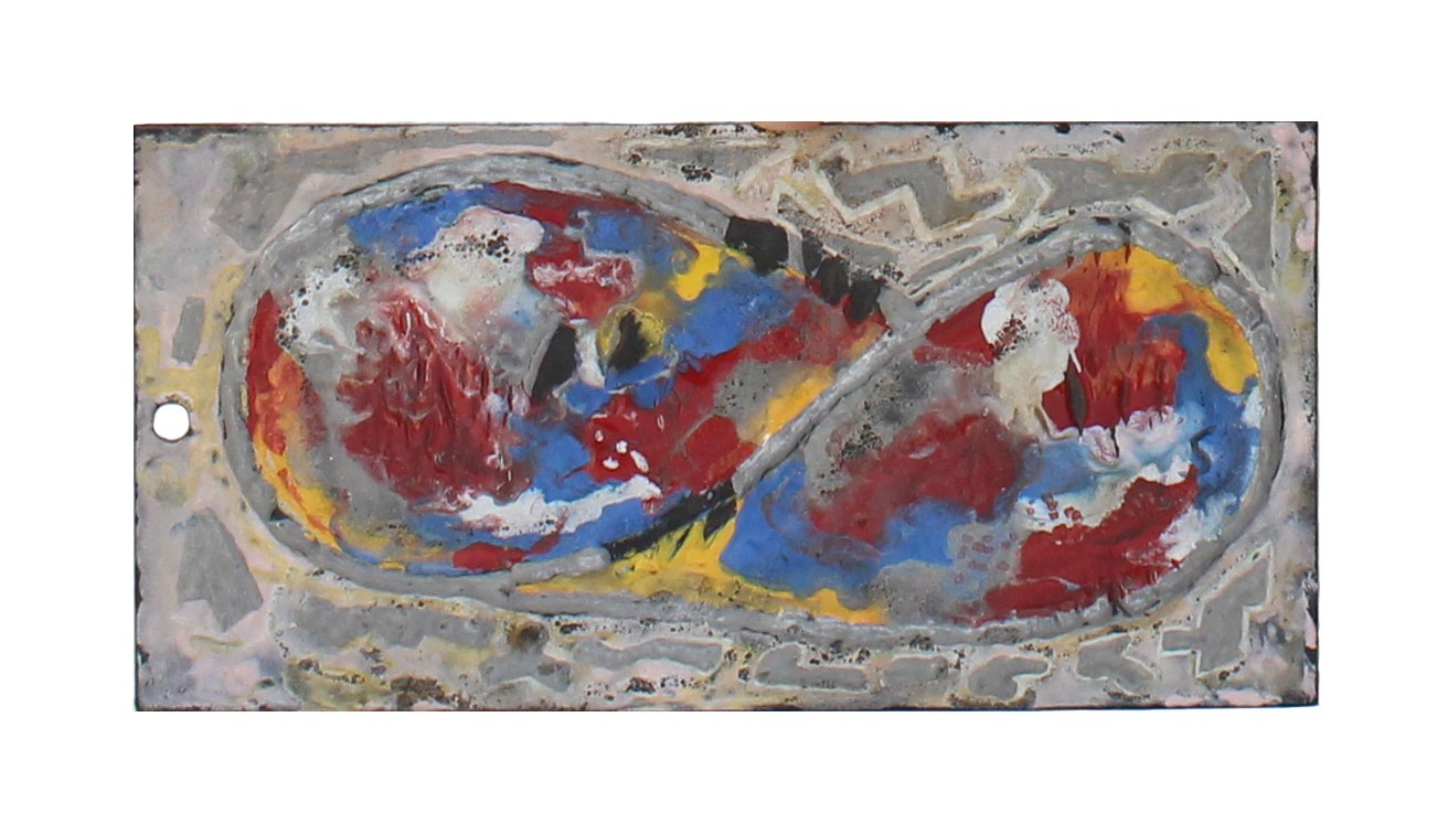 Formas abstractas, 1959, esmalte cloasoné sobre malla de hierro, 14.3 x 10 cm