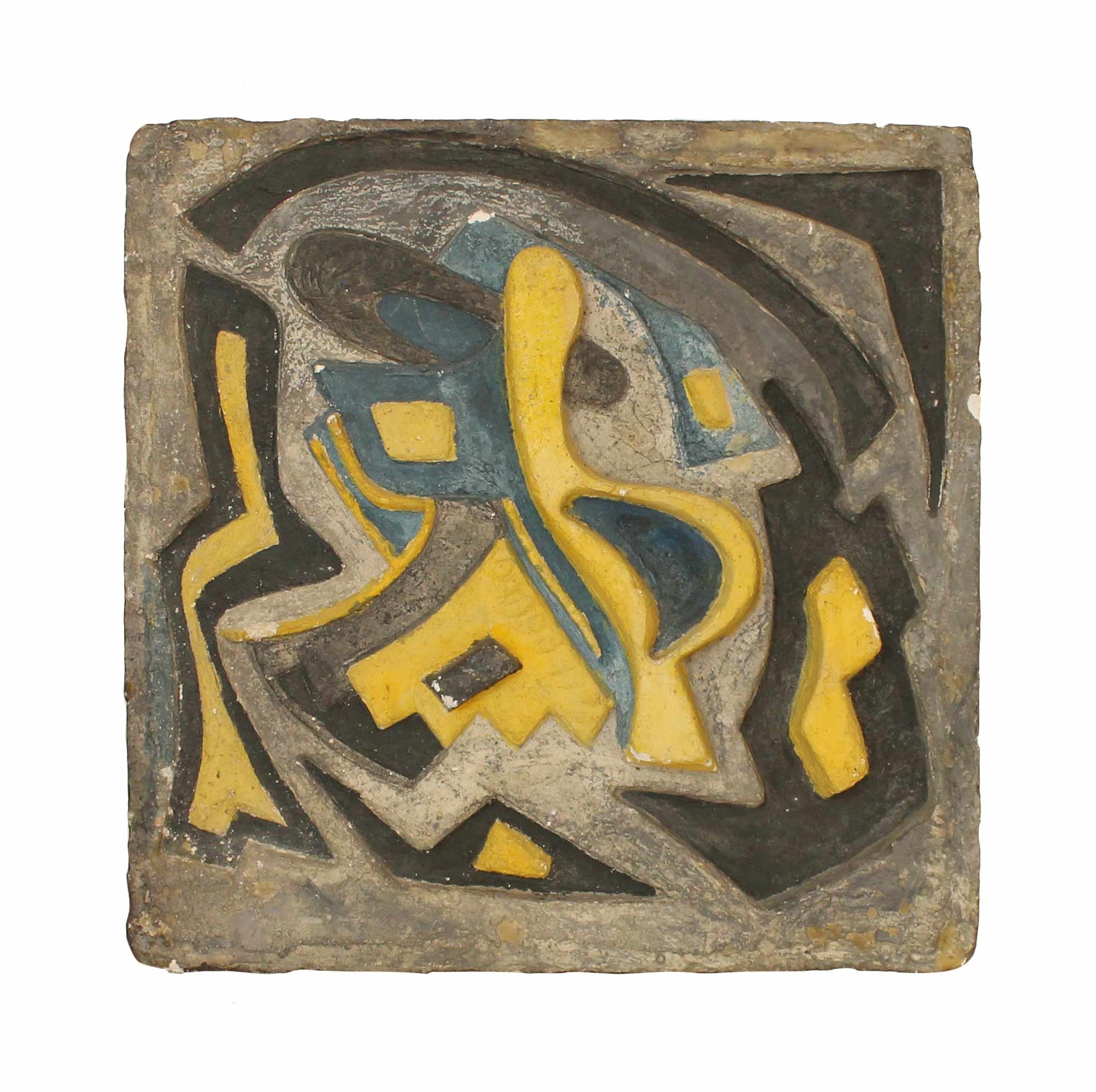 Placa con dibujos geométricos, 1950, pasta policromada, 21 x 15.2 x 2.5 cm